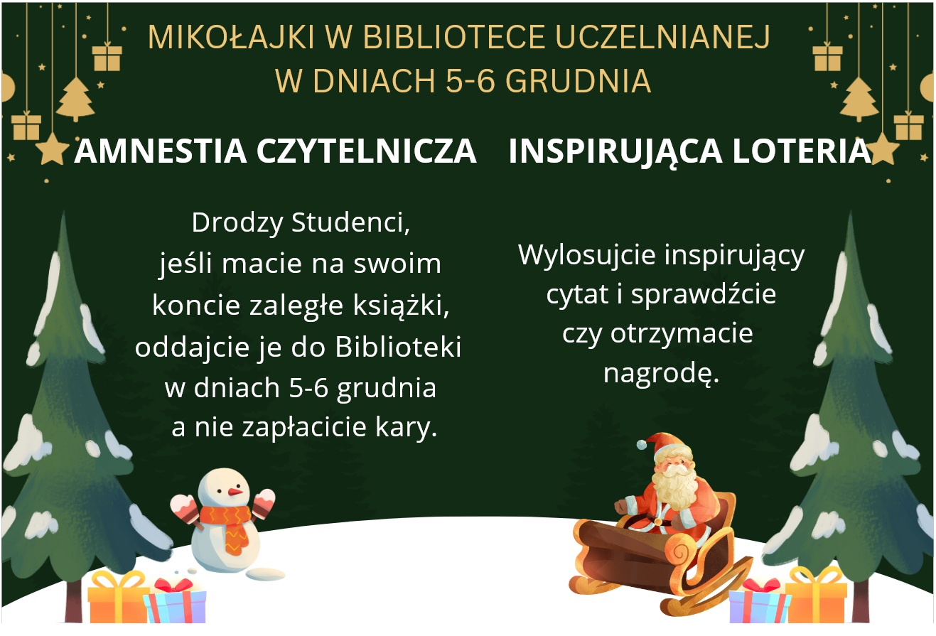 MIKOŁAJKOWA AMNESTIA CZYTELNICZA M.B. 4 grudnia 2025 Aktualności Nawigacja wpisu Poprzedni Poprzedni wpis: GODZINY OTWARCIA BIBLIOTEKINastępny Następny wpis: Życzenia